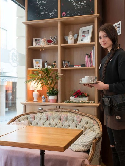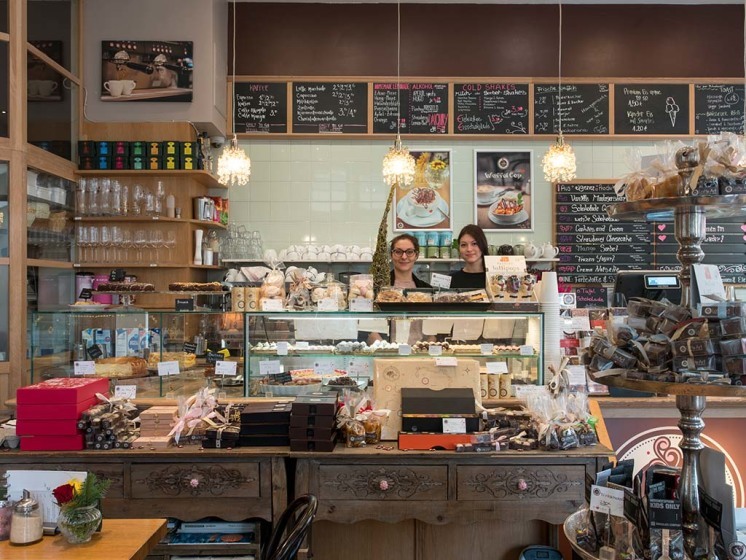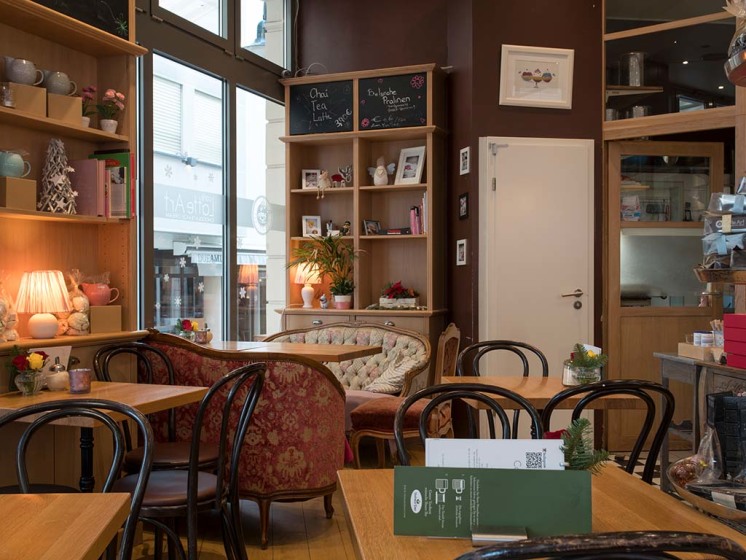 Wo es so verführerisch nach Waffeln duftet, lässt man sich gerne nieder. Kein Wunder, dass das kleine, liebevoll gestaltete Café in der Fußgängerzone stets gut besucht ist. Auch die Eisvitrine zieht jede Menge Passanten an. Alle Sorten – darunter ausgefallene Kreationen wie Apfel-Sellerie – stammen ebenso wie die Kuchen und Suppen aus hauseigener Produktion. Zu Stoßzeiten sitzt man hier sehr dicht beieinander, aber auch das trägt zu dem ganz eigenen Charme des Cafés bei.