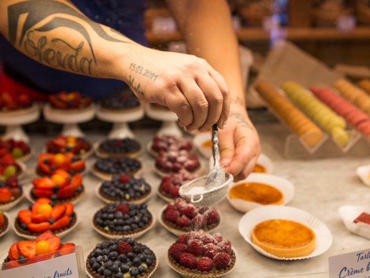 Eine Mischung aus französischer Boulangerie und Pariser Bistro mitten in Wiesbaden. Hier sind die Croissants mit echter Butter gemacht, der Café au Lait kommt in der Bol und das Baguette wird – nach entsprechender Teigruhe – frisch gebacken. Zum Frühstück gibt es allerlei Viennoiserie, Eier nach Wunsch sowie Wurst- und Käsespezialitäten. Der Mittagstisch gestaltet sich typisch französisch mit Croques, Suppen, Flammkuchen oder Quiches, und wer es den Franzosen gleichtun möchte, bestellt dazu ein Glas Vin Rouge, Blanc oder Rosé.