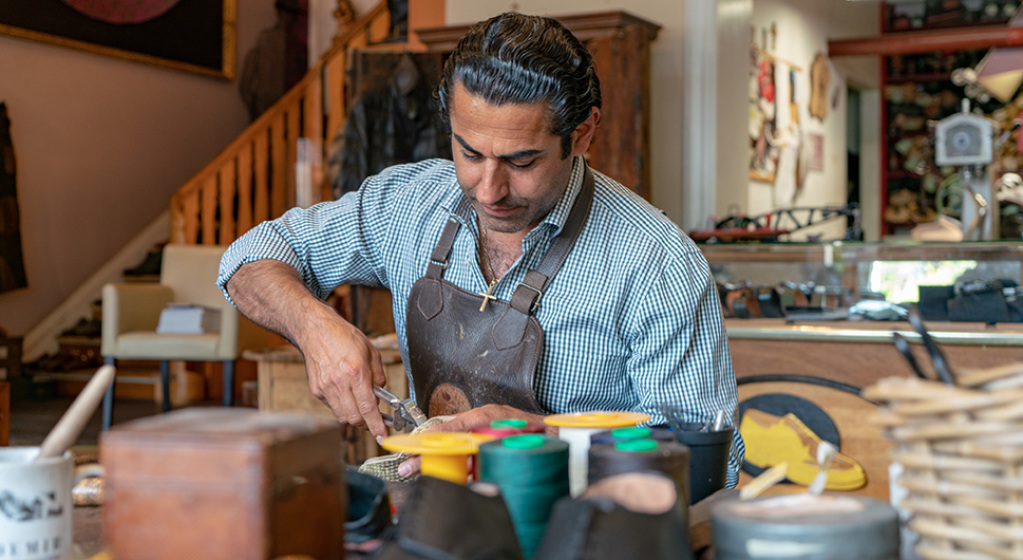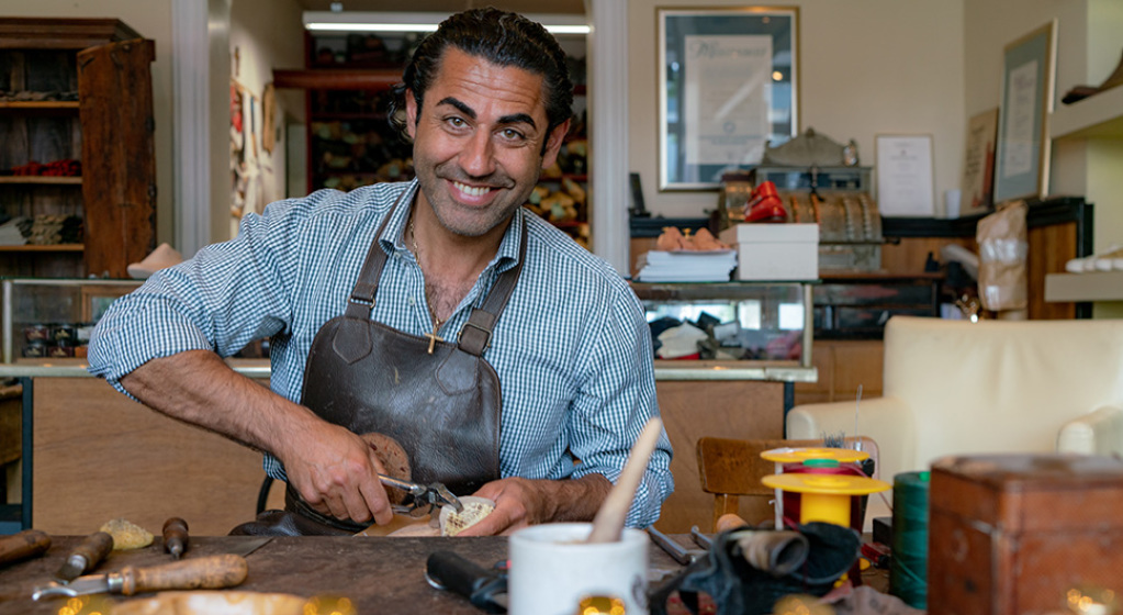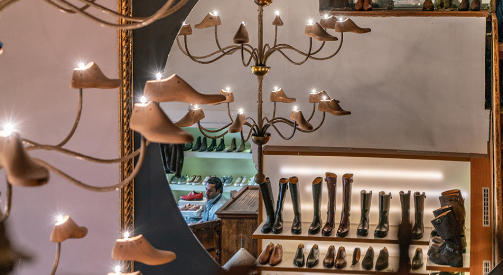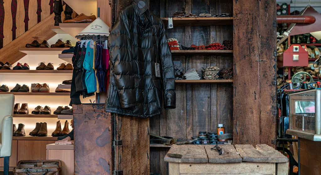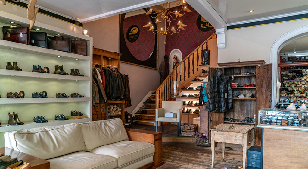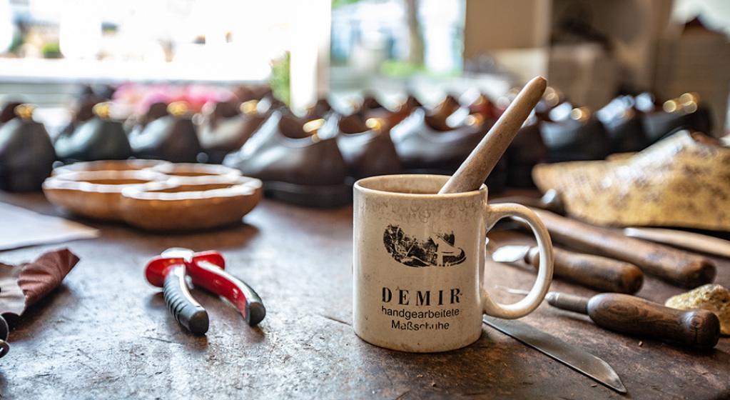 Eine Ladenwerkstatt wie aus dem Bilderbuch – Rustikale Werkbänke, hölzerne Schuhleisten und ungewöhnliches Werkzeug. Wer einmal handgefertigte Lederschuhe getragen hat, wird verstehen, warum Ibrahim Demirs Kunden von weit her anreisen, um sich von ihm beraten zu lassen. Für Individualisten fertigt der Schumachermeister innerhalb von 3 bis 6 Monaten handgenähte Schuhe nach Maß. Wenn es schneller gehen soll gibt, es ein Sortiment ausgewählter Schuhe kleiner Manufakturen wie Santoni, Cheany, Crockett & Jones, Dinckelacker oder Ludwig Reiter sowie Lederaccessoires von erstklassiger Qualität.