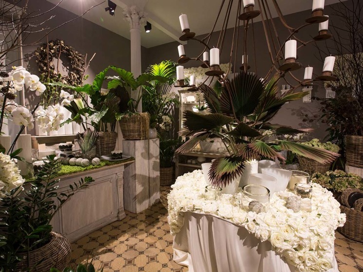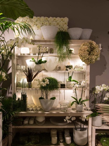 Wie sich Agaven, Blattgold und schwarze Keramik zu einem stilvollen Ensemble kombinieren lassen, zeigt der Florist in seinem Geschäft auf eindrucksvolle Weise. Wie in einem Showroom werden verschiedene Blumen, Deko-Objekte und Wohnaccessoires in farblich und thematisch aufeinander abgestimmten Arrangements präsentiert. Vom opulenten Raumkonzept bis zum einfachen Strauß schaffen Priewe und sein Team florale Kunstwerke.